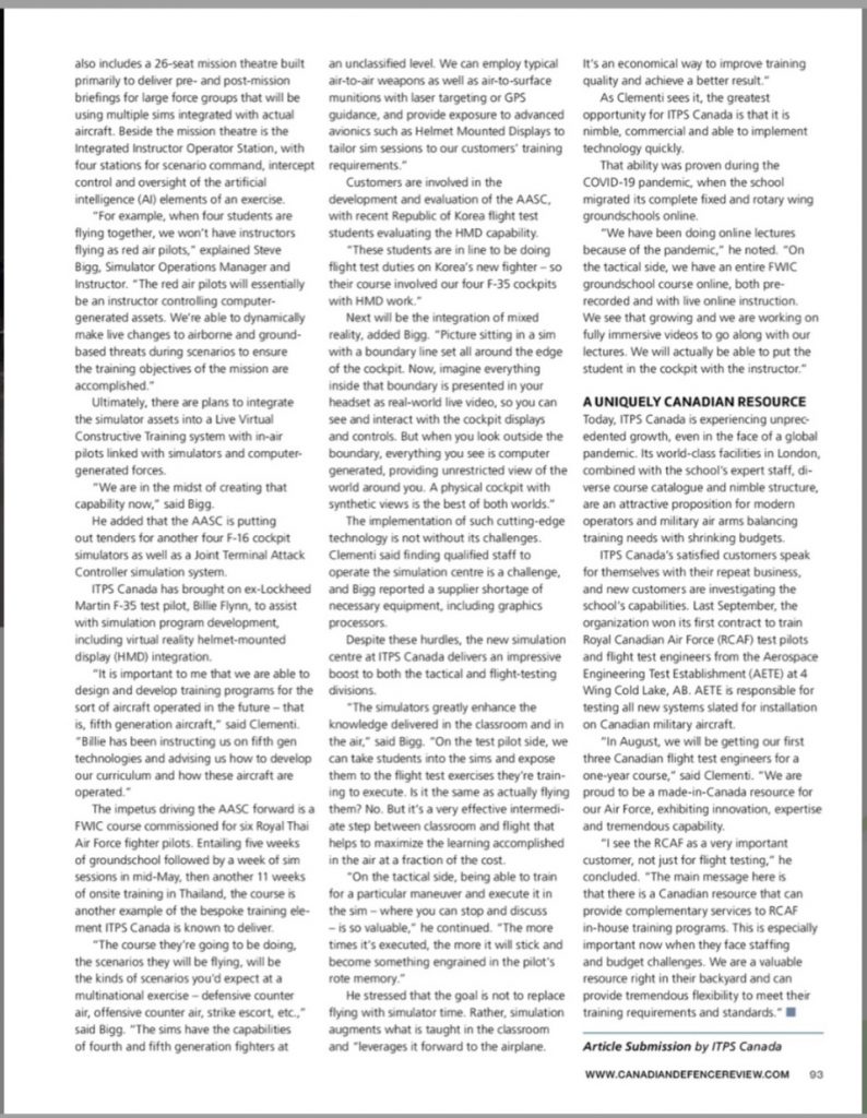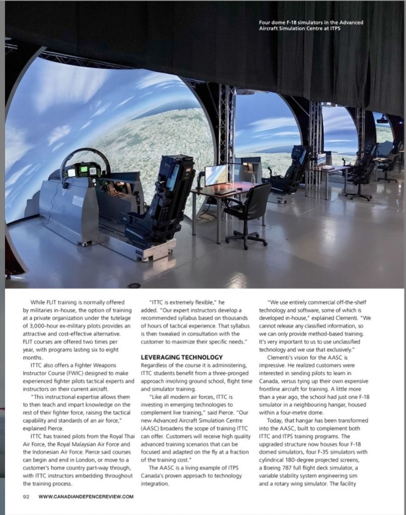 Learn more about ITPS Canada in this month’s Canadian Defence Review Magazine. Four pages of our past, present and future as Canada’s aerospace leader in flight test and tactical training education.